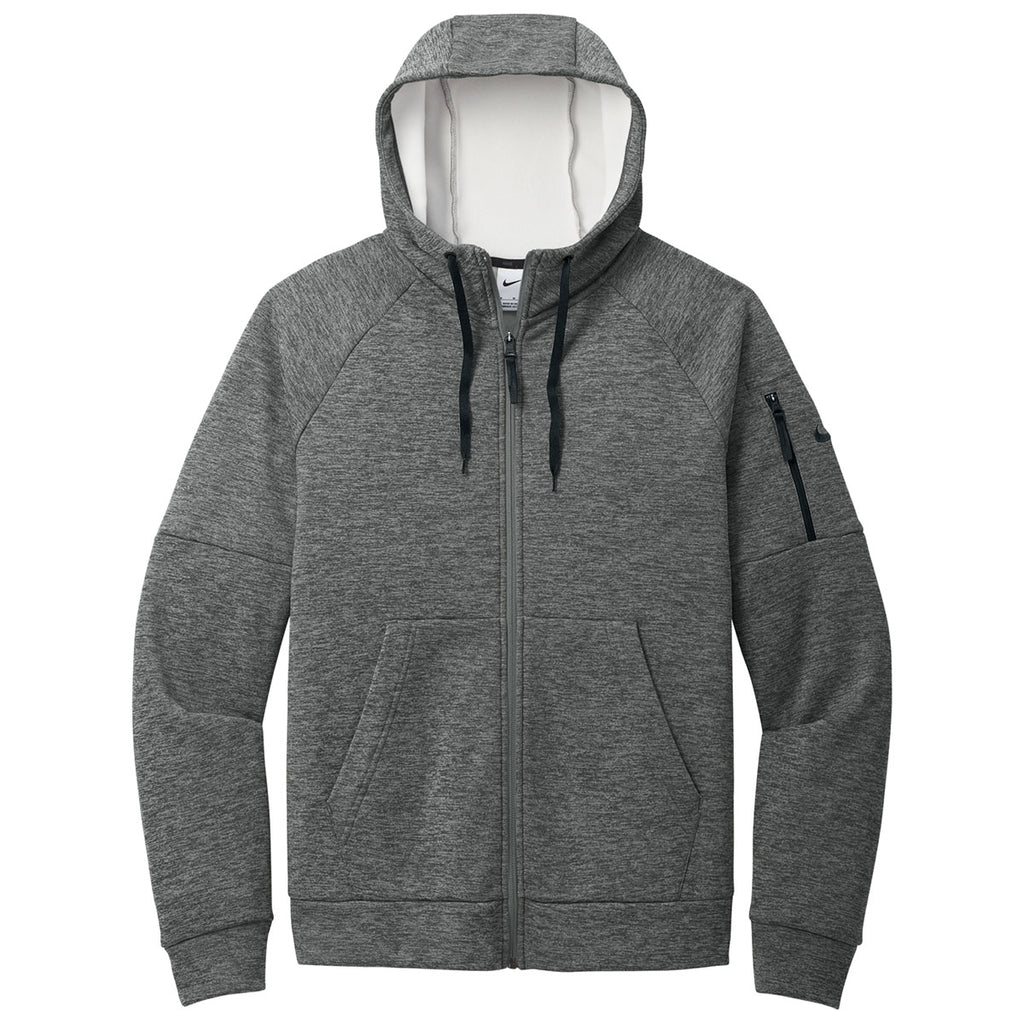 Nike Men's Charcoal Heather Therma-FIT Pocket Full-Zip Fleece Hoodie