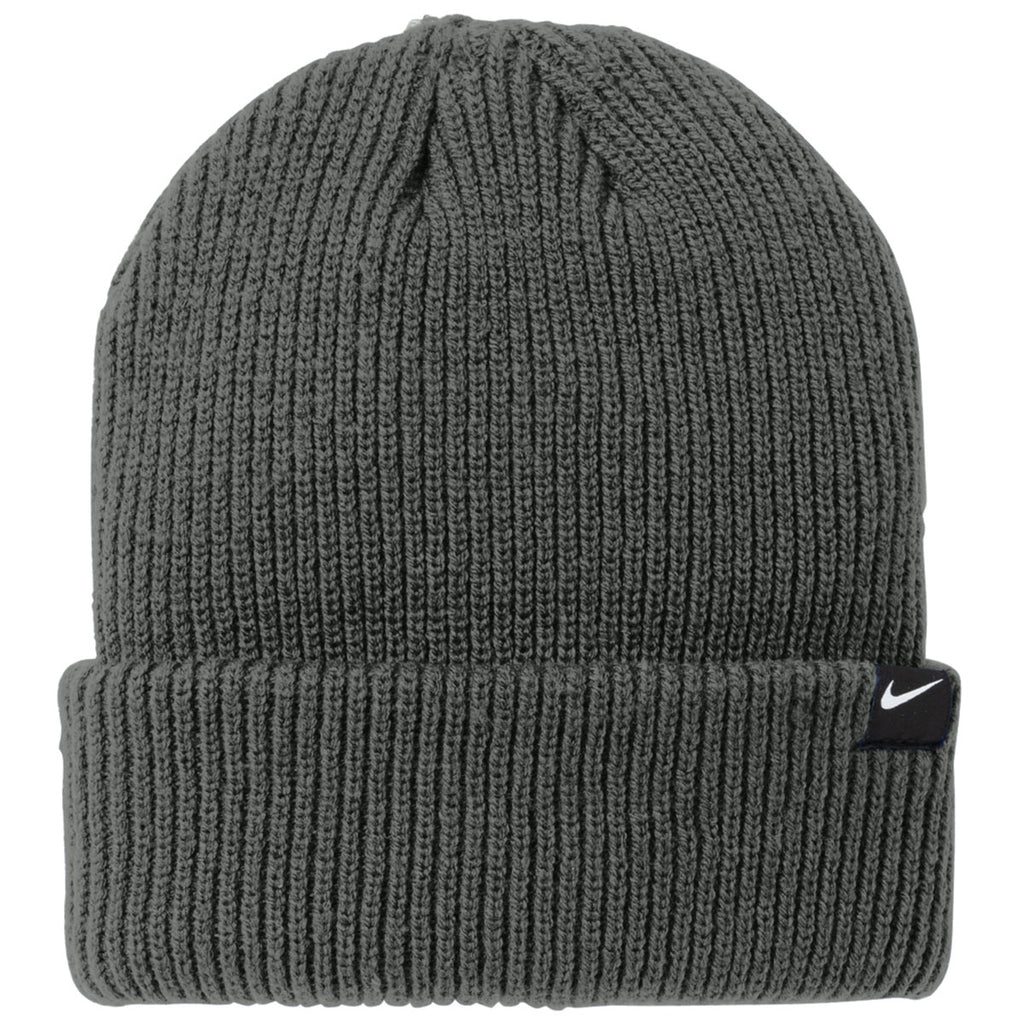 Nike Dark Grey Terra Beanie with custom embroidery is a street-ready beanie with loose knit and an adjustable cuff. Ideal for completing a look year round, this beanie is soft, comfortable and made of recycled polyester, so good for the environment. Place an order today before these sell out.