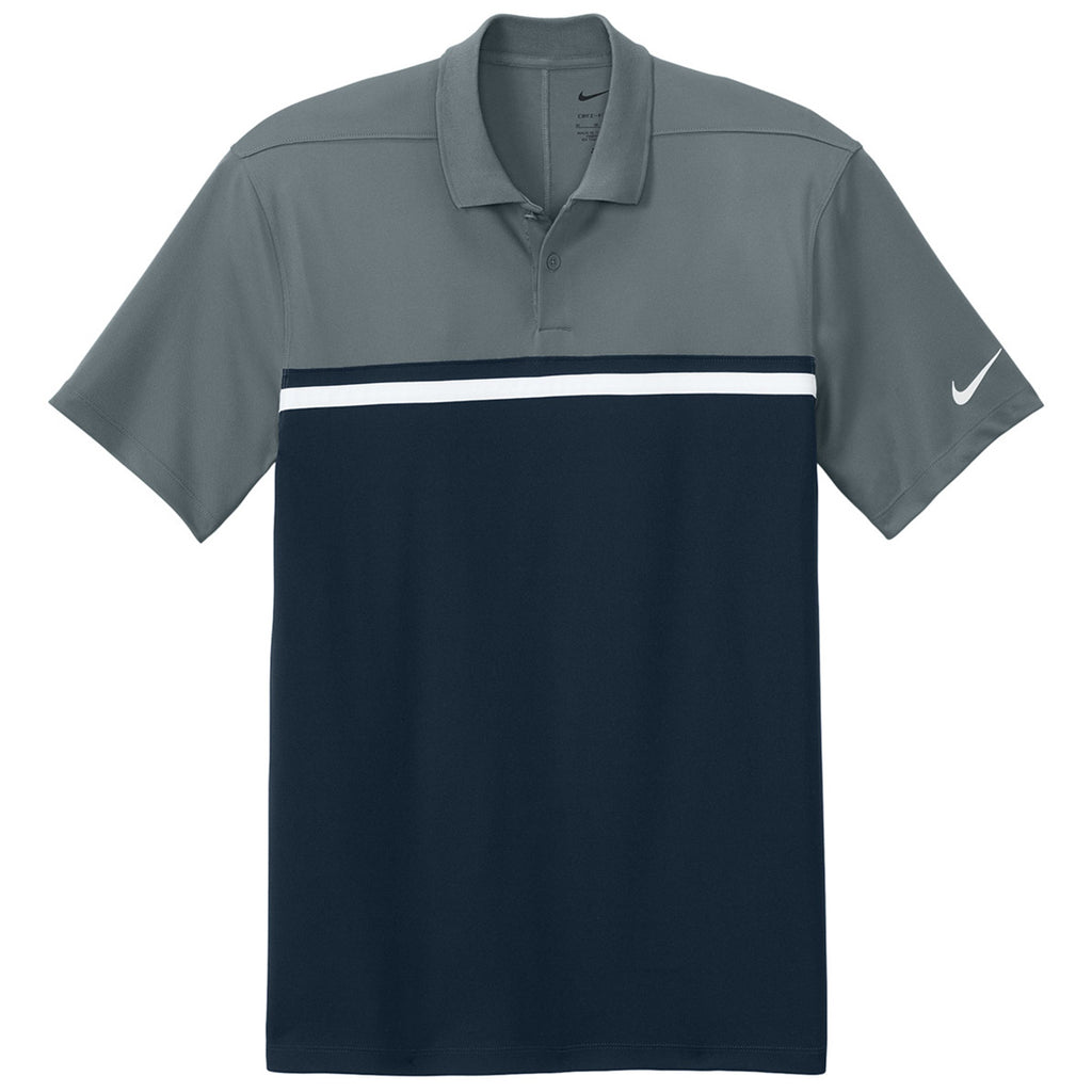 Show off your style with a custom Nike Men's Cool Grey/ Navy/ White Dri-FIT Victory Colorblock Polo. This sustainable polo offers Dri-FIT moisture technology and the details that matter, like an anti-curl collar and rolled forward shoulders. Ideal for afternoon meetings at the clubhouse after a round of golf. Place an order right away.This product cannot ship outside of the United States.