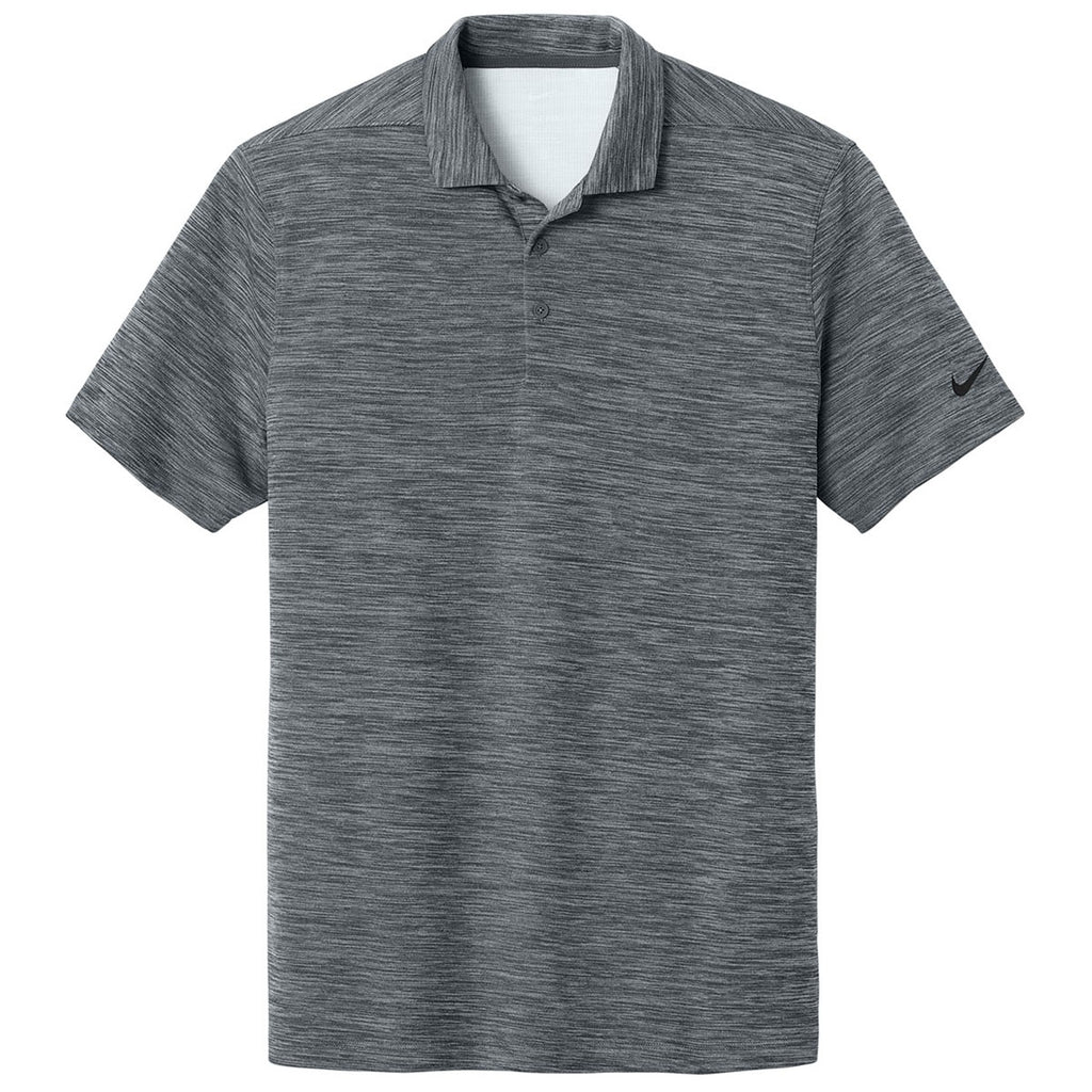 Nike Men's Dark Grey Dri-FIT Striated Polo blends custom performance with style. Featuring moisture-wicking technology, it ensures you stay dry and comfortable, whether on the golf course or at the office. The subtle striated texture adds a modern touch, making this polo a versatile choice for professional and casual settings.This product cannot ship outside of the United States.