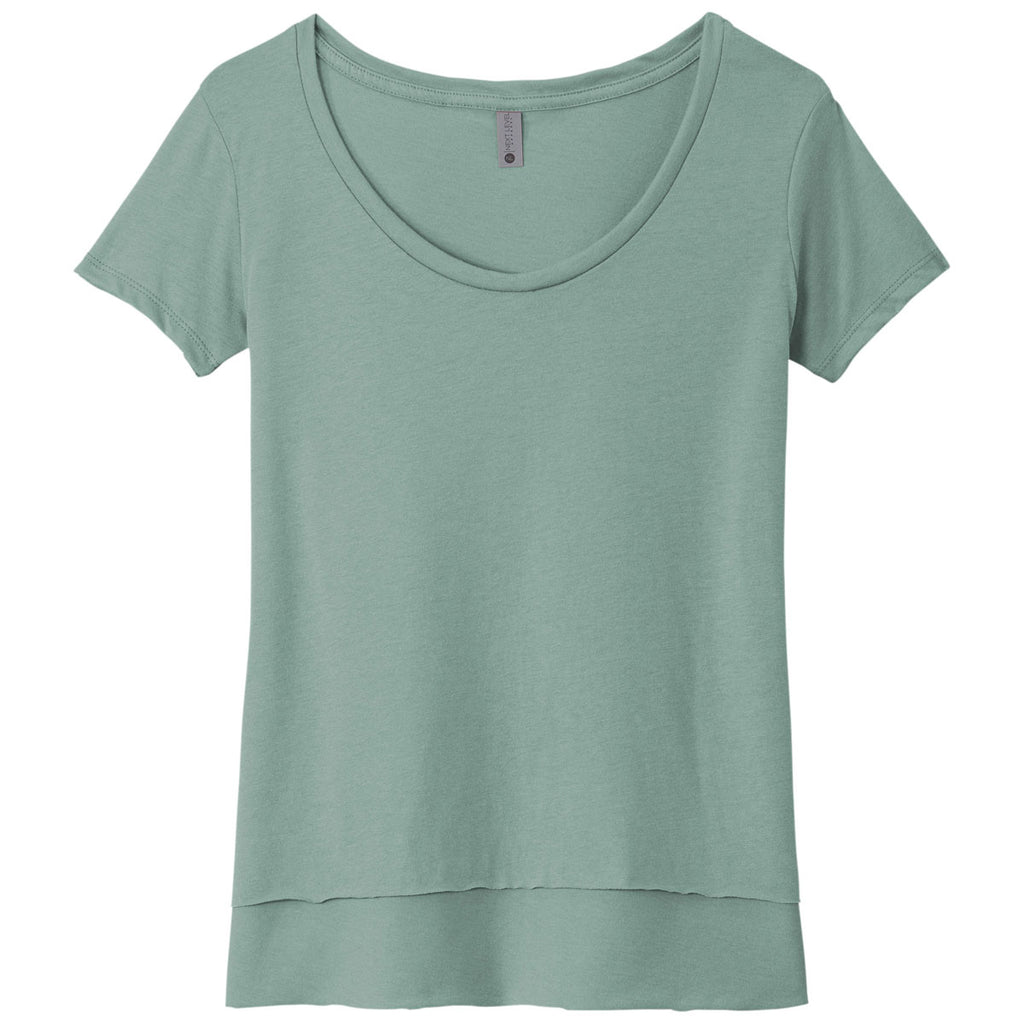 Amp up your tee collection with a custom Next Level Women's Stonewash Green Festival Scoop Neck Tee. This takes the simple tee to the nest level with a scoop neck cut that provides flair. Add a company logo to use this as employee apparel or for some special employee event used for team or company building. Try out a custom logo to use for a team, organization, club, or just to add to your own wardrobe. The poly and ring spun cotton blend is soft, comfortable, and wearable with rib knit scoop neck and a relaxed fit. The raw edge creates an exaggerated drop tail hem for extra coverage.Highlights
