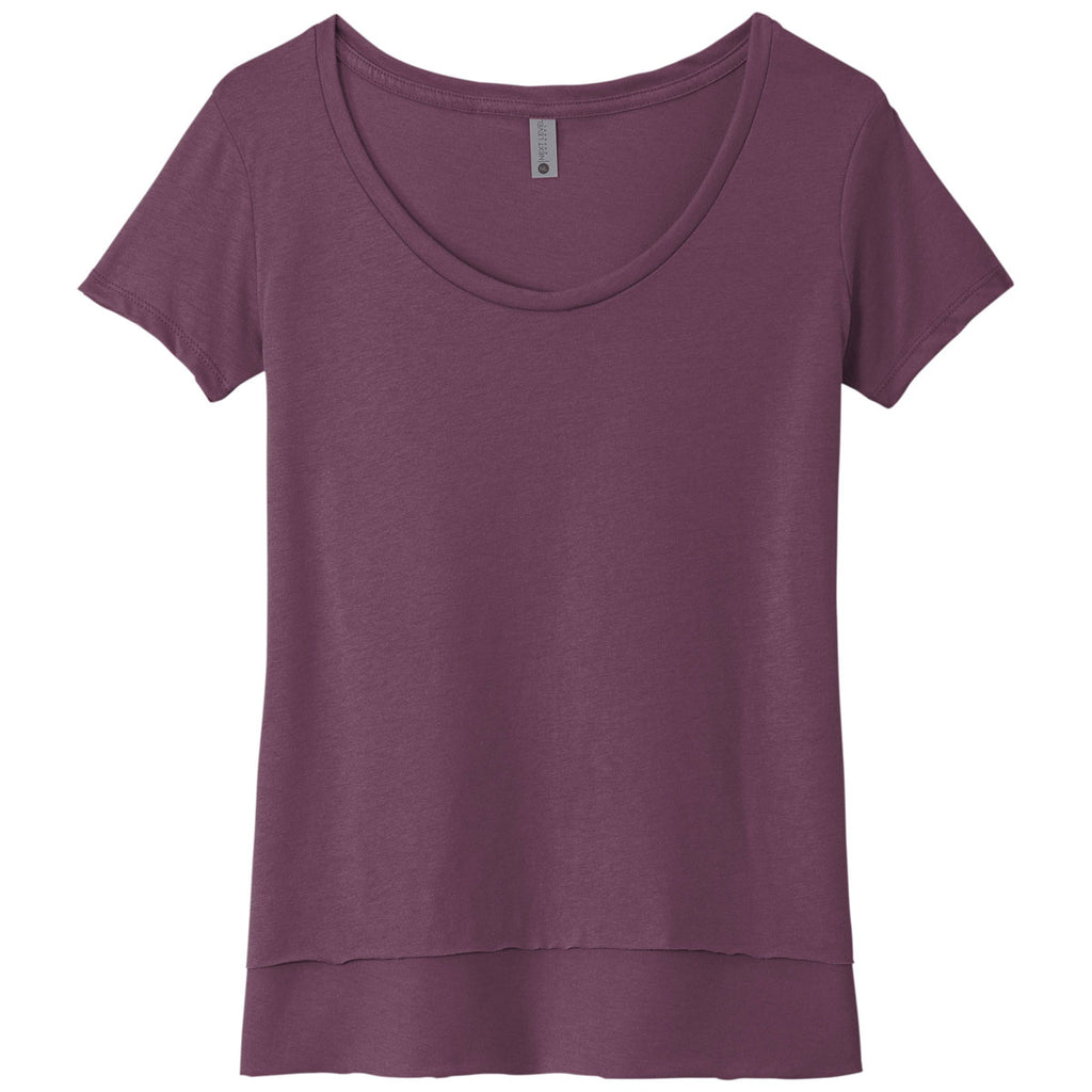 Amp up your tee collection with a custom Next Level Women's Shiraz Festival Scoop Neck Tee. This takes the simple tee to the nest level with a scoop neck cut that provides flair. Add a company logo to use this as employee apparel or for some special employee event used for team or company building. Try out a custom logo to use for a team, organization, club, or just to add to your own wardrobe. The poly and ring spun cotton blend is soft, comfortable, and wearable with rib knit scoop neck and a relaxed fit. The raw edge creates an exaggerated drop tail hem for extra coverage.