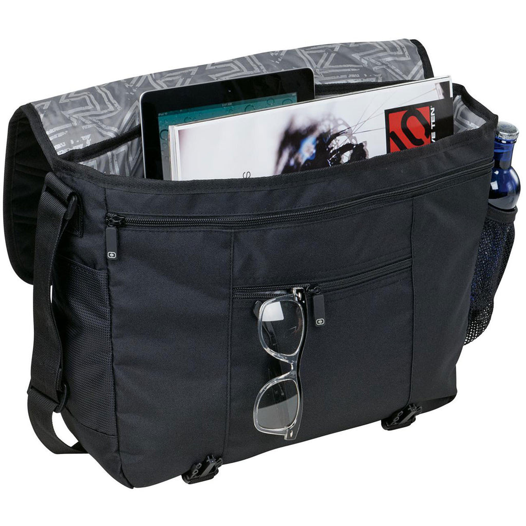 The OGIO Black Upton Messenger bag is a sleek, contemporary design that makes for a fashionable accent without sacrificing any function. Novel idea, right? This padded messenger bag would work well for weekend activities, or when you need a functional bag to pair with your work wardrobe. It has a flap design that has a double-lock closure, a padded laptop compartment, a padded tablet sleeve, zippered pockets that are easily accessible, a top handle and an adjustable shoulder strap. Built to last, this sporty bag will stand the test of time.