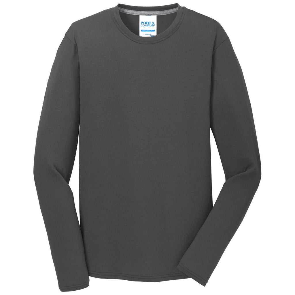 Port & Company Men's Charcoal Long Sleeve Performance Blend Tee