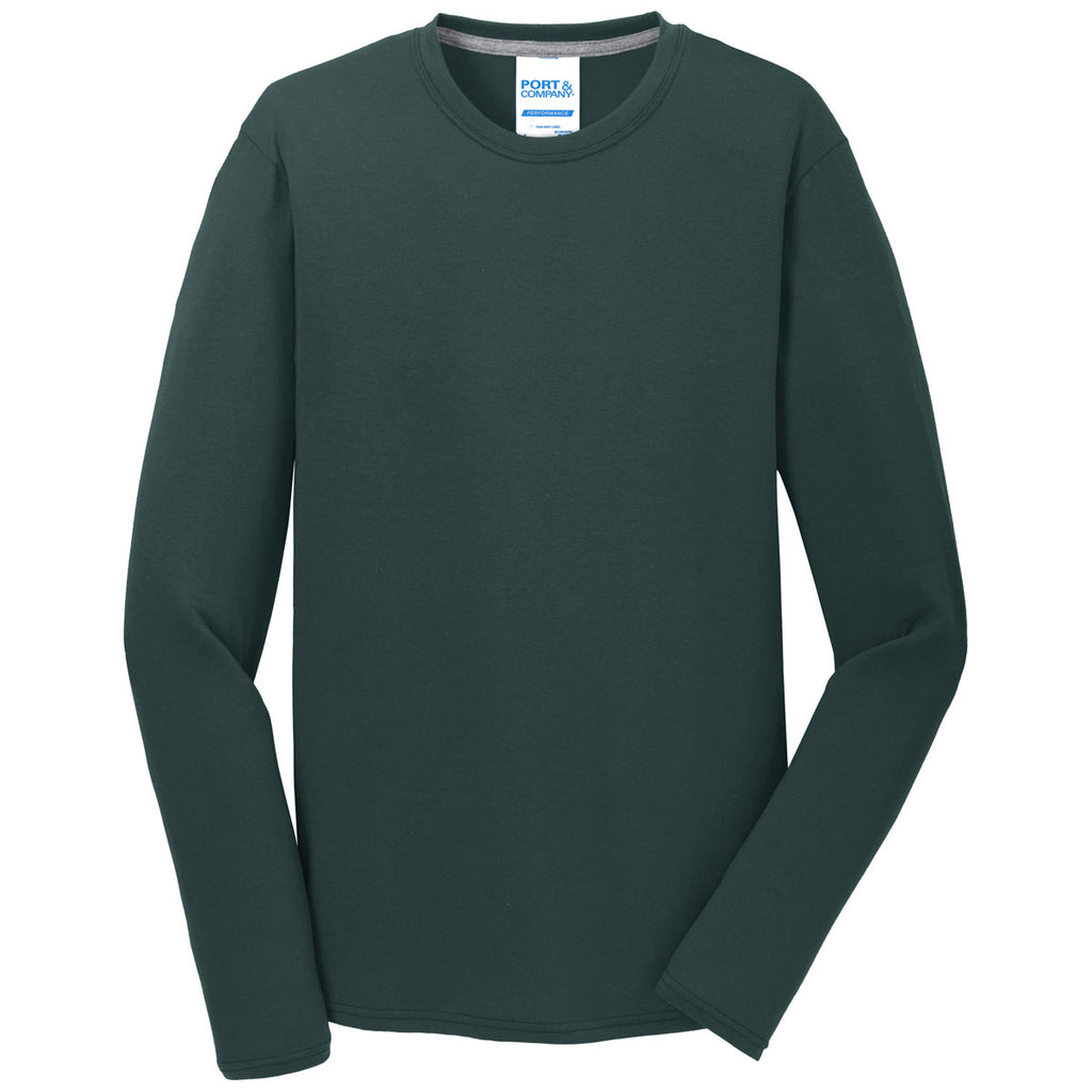 Port & Company Men's Dark Green Long Sleeve Performance Blend TeeHighlights