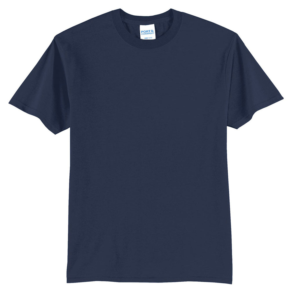 When you want to order branded company apparel, you cannot go wrong with the custom logoed Port & Company Men's Navy Tall Core Blend Tee. The stylish tee makes the ideal giveaway for the job candidates attending the next career day. Attach your company logo on the large imprint area to keep your company in the minds of anyone that interacts with you at the career fair. The blend of cotton and polyester creates a super soft fabric that resists rips and tears. Turn the printed tee into the company softball uniform, which exposes your brand to hundreds of customers each week.