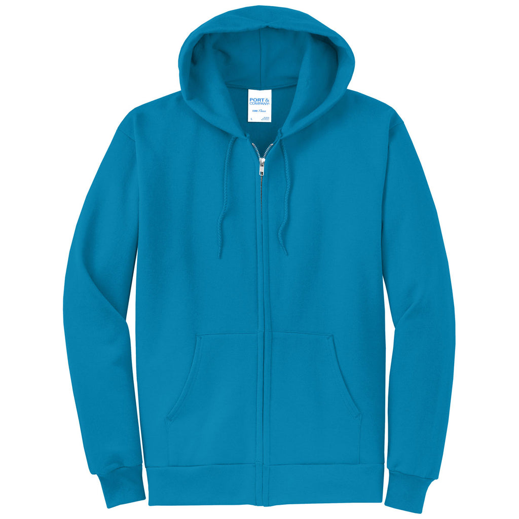 Port & Company Men's Neon Blue Core Fleece Full-Zip Hooded Sweatshirt