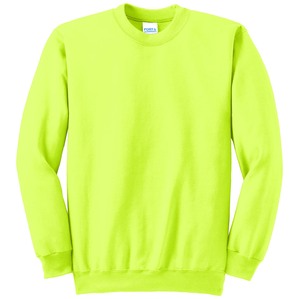 Crafted from a balanced cotton-polyester blend, this Port & Company Men's Safety Green Tall Essential Fleece Crewneck Sweatshirt is as ready for relaxing upside-down on the sofa as it is the office. Incorporates all you need to achieve a contemporary yet casual look, ultra-soft cotton form, and crewneck. Pill-resistant finish ensures clean and long life. In sum, this one comes with a great versatility. Great for crews or teams by adding a custom logo imprint. Perfect for enhancing brand's corporate image by using this shirt as a giveaway to a potential customer with your logo and message on it.Highlights