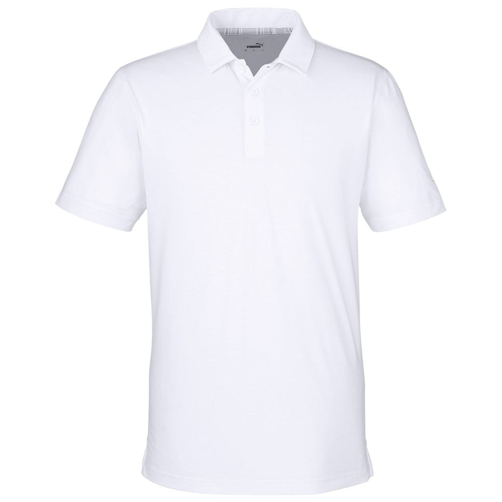 Puma Golf Men's Bright White Bandon Polo with custom embroidery is the perfect option for those who like to spend time on the golf course. Whether working as a caddy, teaching the basics, or just enjoying the back nine, this polo is a must-have that is sustainably sourced, renewable, moisture-wicking, antimicrobial, and has a UPF 30+. Place your order right away.This product can only ship within the United States and Canada.