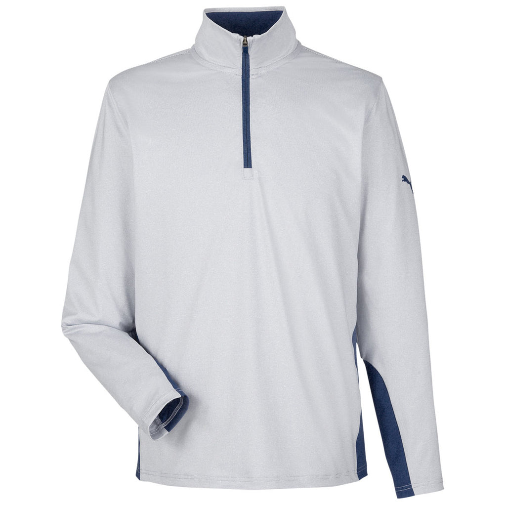 Get active with a custom Puma Golf Men's Navy Blazer/Bright White Mesa Stripe Quarter-Zip in your choice of colors. The moisture-wicking pullover is easy to wear and style, whether working from home, going to the office or working out. The contrast color at the side and sleeve panels add fashion to the overall appearance. Place your order today.This product can only ship within the United States and Canada.
