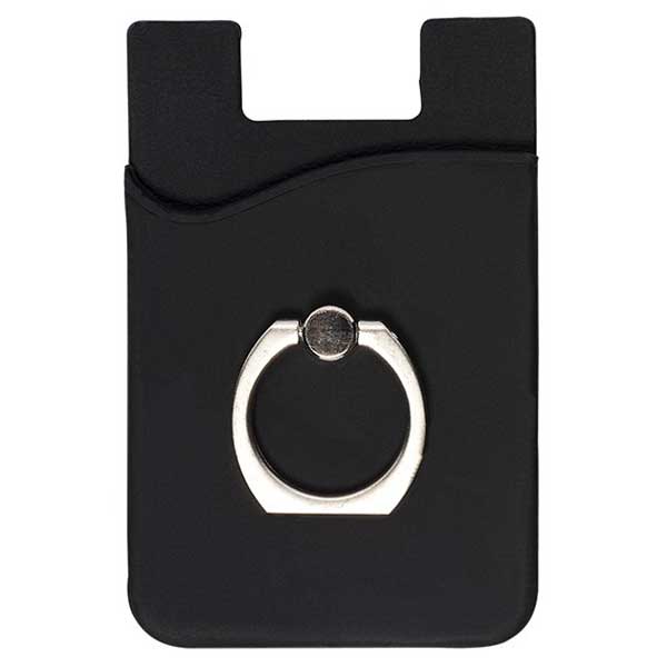 - Silicone smartphone pocket with rotating Metal ring on back that transforms device into stand