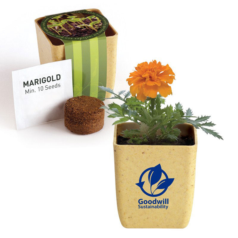 - Includes a flower pot/planter, a compressed soil wafer and marigold seed packet