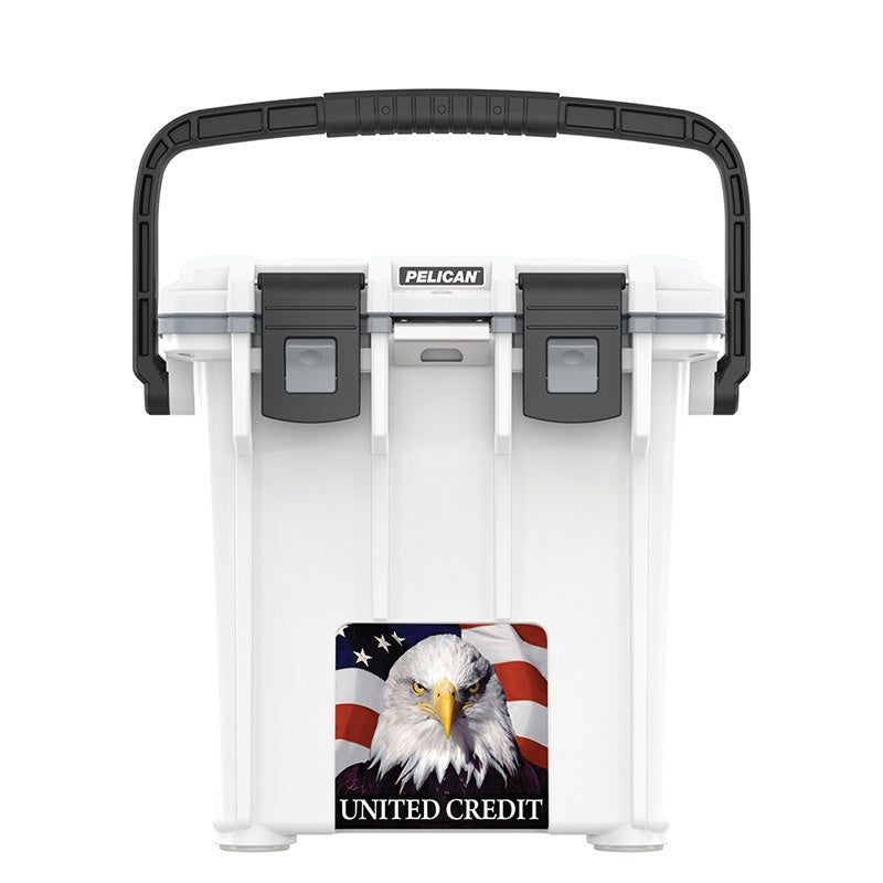 Infusing high-grade materials and foolproof functionality, the Pelican White Elite Cooler - 20 Qt gives you the most fierce way to chill up to 15 cans or four wine bottles upright. Help your customers or employees pack their own drinks by handing out this hard-core cooler all while putting your company's name or logo on it. Its durable construction ensures whatever they're carrying will stay safe and snug, no matter what the weather throws their way or what animal shows up uninvited at the campsite.The minimum order for this product is 6 pieces.