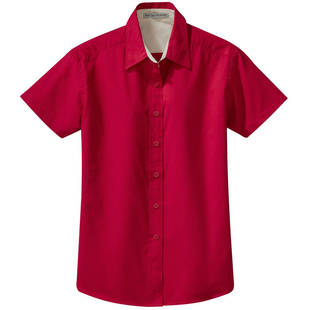 Want an employee uniform that looks good no matter the occasion or what hour of the shift you're on? Then allow us to introduce you to the Port Authority Women's Red/Light Stone Short Sleeve Easy Care Shirt. Not only is this shirt lightweight (4.5 ounces), but it's breathable, thanks to a 55/45 cotton/poly blend. The traditional, relaxed look is thanks to the open collar and dyed-to-match buttons that steal none of your own custom embroidery or corporate logo's thunder. And the shirt is easy enough to care for and maintain that your employees will have no problem wearing it more than once a week.Corresponding Men's Style: Port Authority Men's Red/Light Stone Short Sleeve Easy Care Shirt