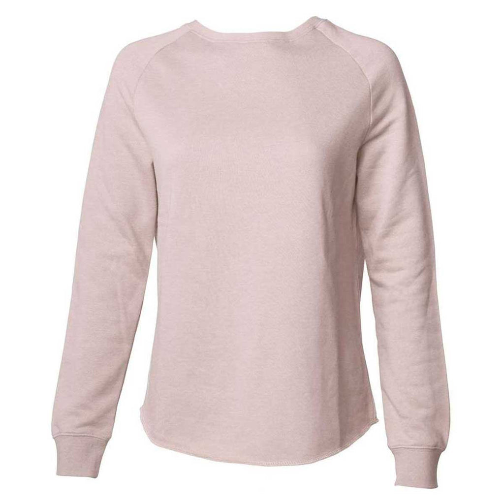 Enjoy life in a screen print Independent Trading Co. Women's Blush California Wave Wash Crewneck Sweatshirt. Made of midweight cotton polyester blend of 3-end fleece with raglan sleeves and blind stitch + coverstitch sewing, this is a must have sweatshirt. Add a company logo to offer these at trade shows and events or a custom logo to give as gifts to support a team or organization. Perfect to wear alone or layered, this crewneck will be welcome in most wardrobes. Cuddle up, go for a run, or just enjoy your day in this sweatshirt.Highlights