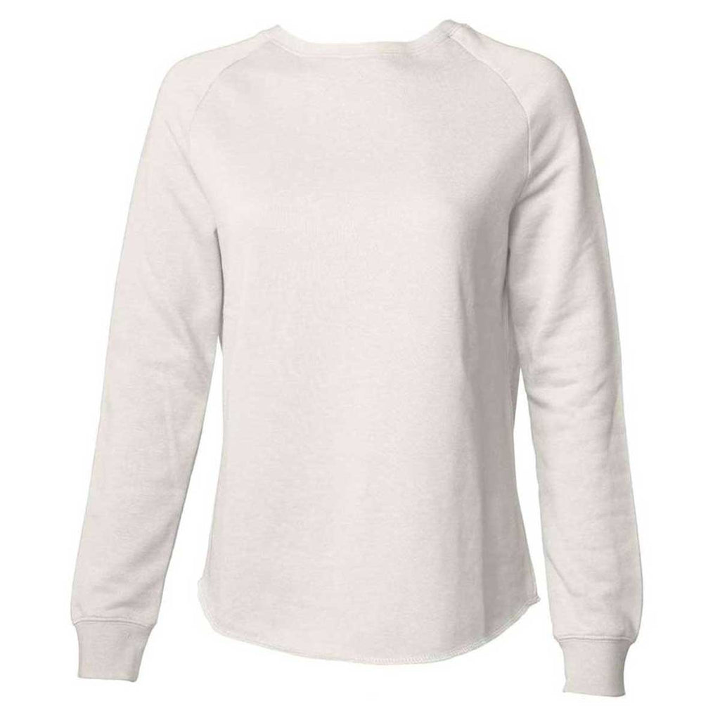 Enjoy life in a screen print Independent Trading Co. Women's Bone California Wave Wash Crewneck Sweatshirt. Made of midweight cotton polyester blend of 3-end fleece with raglan sleeves and blind stitch + coverstitch sewing, this is a must have sweatshirt. Add a company logo to offer these at trade shows and events or a custom logo to give as gifts to support a team or organization. Perfect to wear alone or layered, this crewneck will be welcome in most wardrobes. Cuddle up, go for a run, or just enjoy your day in this sweatshirt.