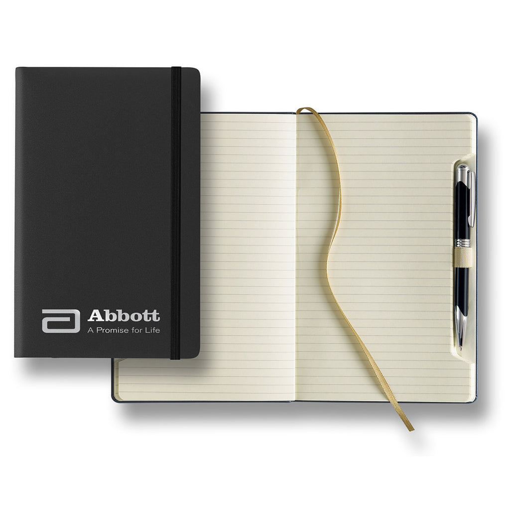 Record special moments, day-to-day insights and more with this travel-sized Matra Scribe Ivory notebook encouraging you with some extra goals to strive for with its 240 die-cut lined pages in gray print. Ample custom imprint area on its high-end matte finished cover makes your logo special and prominent.