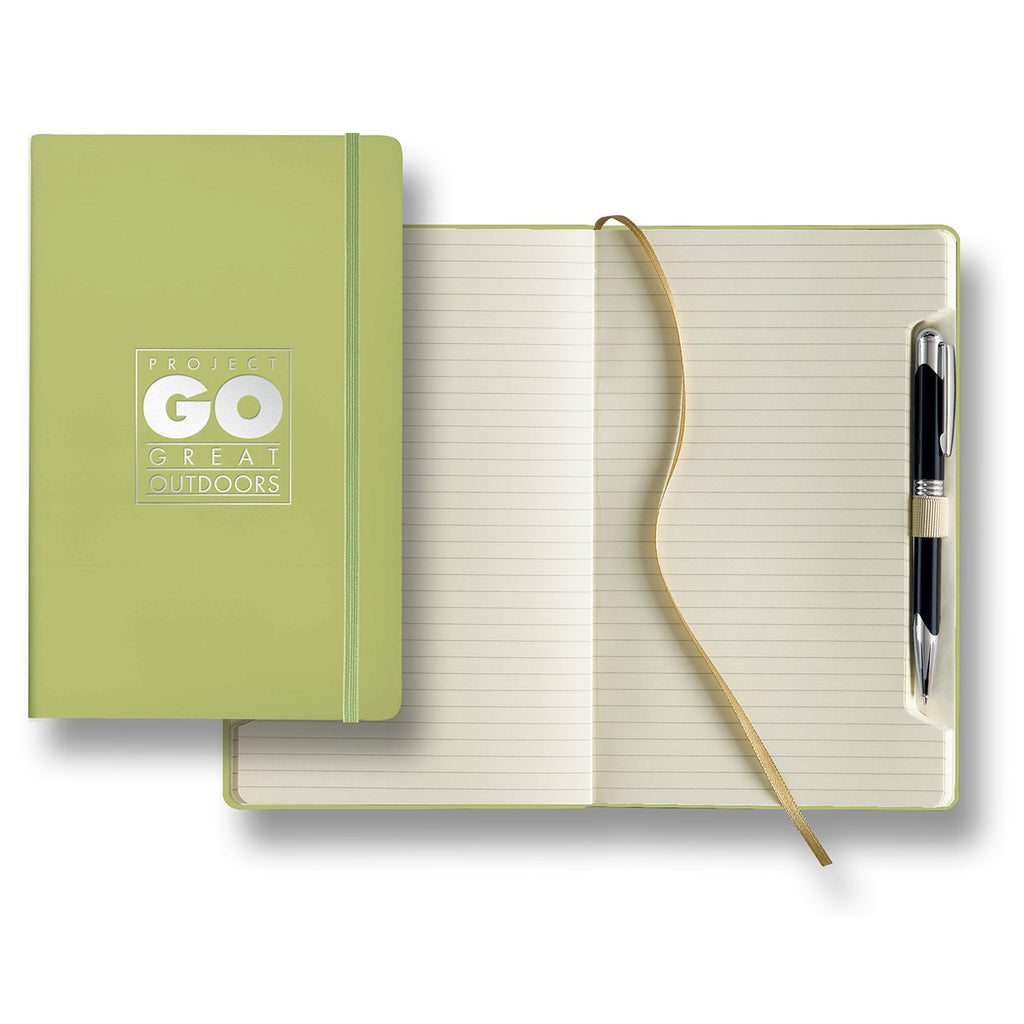 Record special moments, day-to-day insights and more with this travel-sized Matra Scribe Ivory notebook encouraging you with some extra goals to strive for with its 240 die-cut lined pages in gray print. Ample custom imprint area on its high-end matte finished cover makes your logo special and prominent.