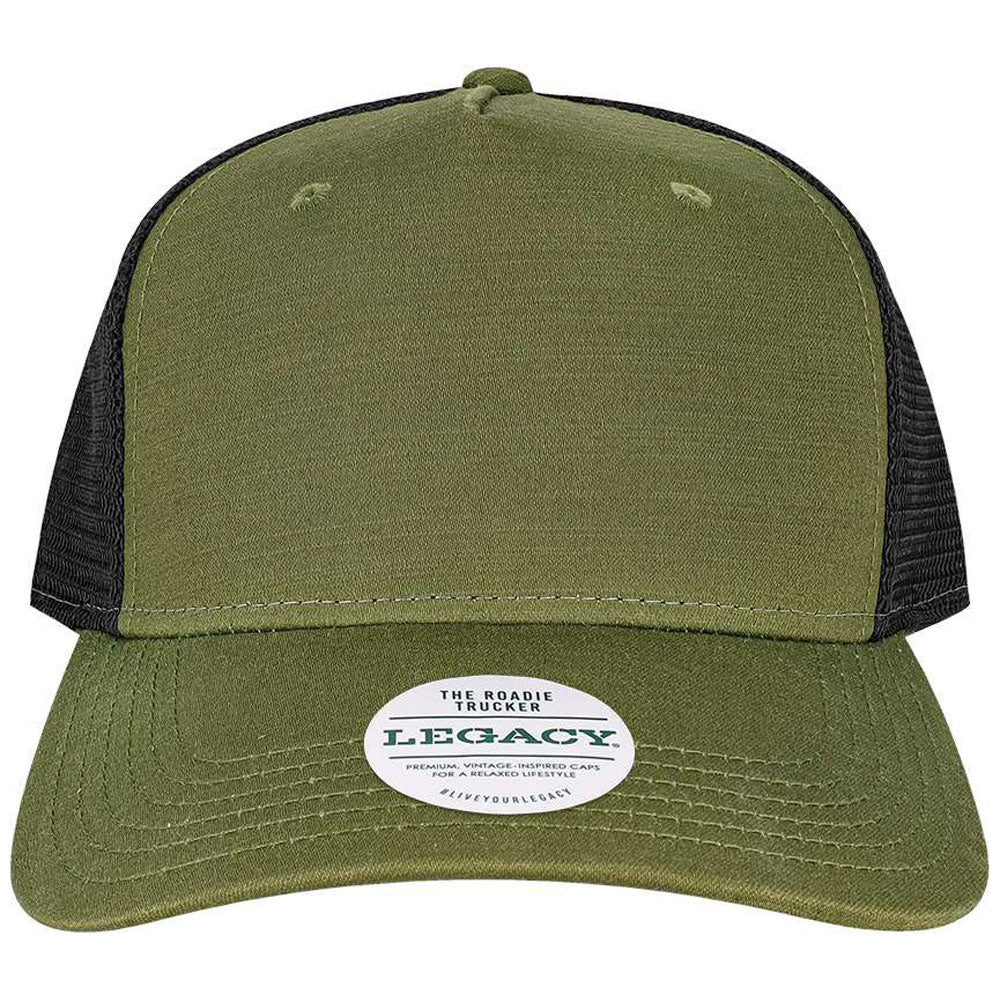 Legacy Olive Slub/Black Five-Panel Trucker Cap