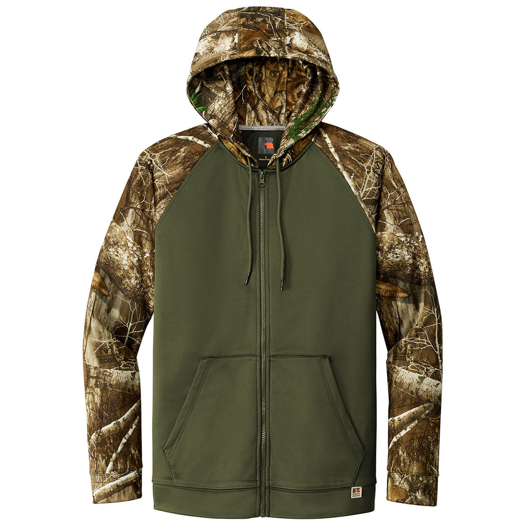 Russell Outdoors Men's Olive Drab Green/ Realtree Edge Realtree Performance Colorblock Full Zip Hoodie