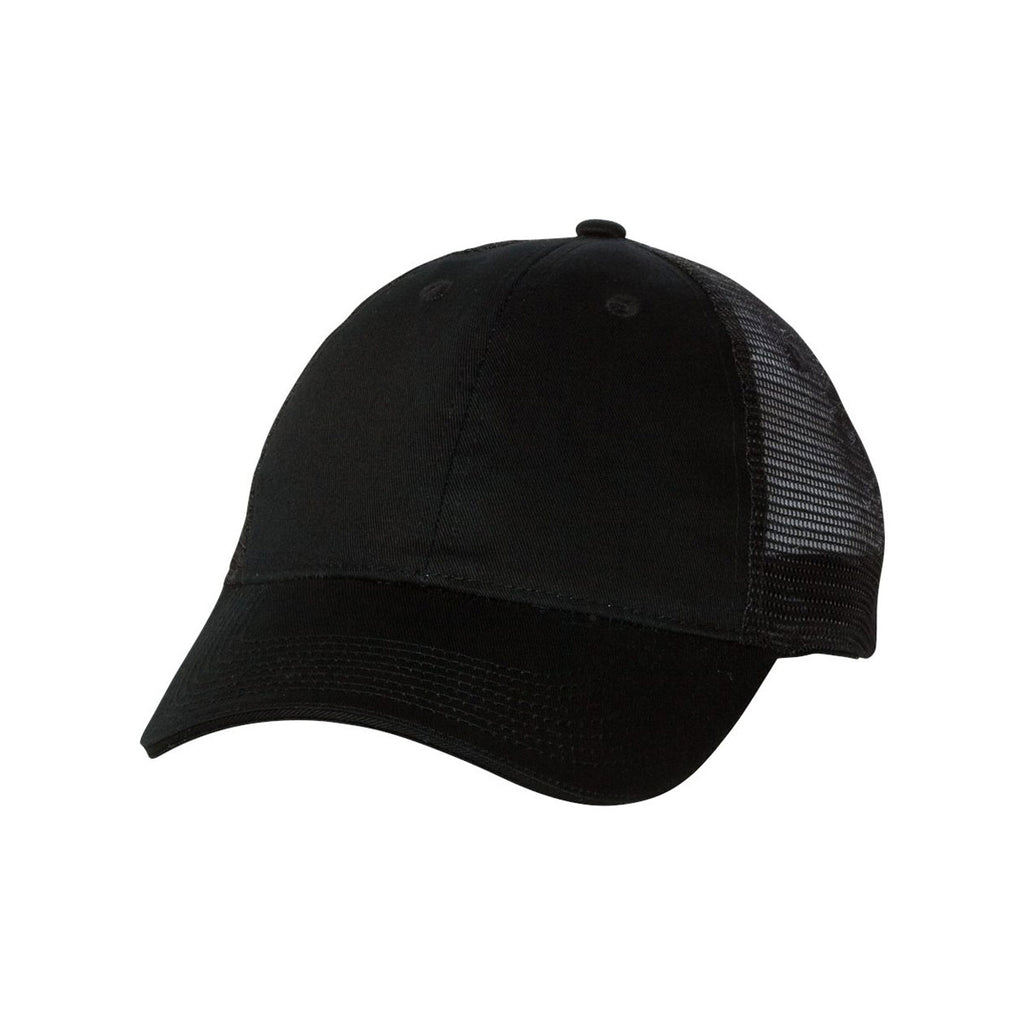 When you need headwear for a long trek cross country, put on the custom logoed Valucap Black/Black Sandwich Trucker Cap. Designed with a cotton and polyester blend, the super soft cap resists rips and tears to keep the headwear in pristine condition for years to come. One-hundred percent polyester mesh in the back of the hat helps circulate air to keep you comfortably cool. Structured six panels present a professional appearance for customers who apply their skills outdoors. The mid profile design keeps the sun out of your eyes during corporate softball games. Attach your company logo to get the word out about your products and services.Highlights