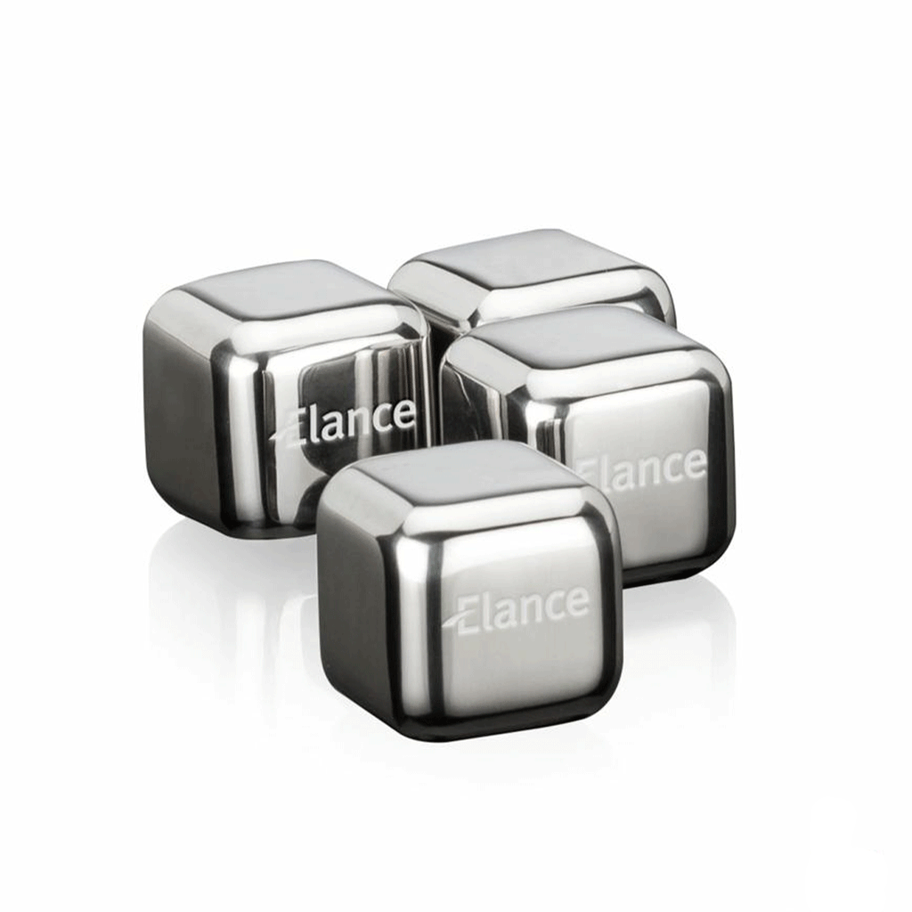 • Set of 18/8 Stainless Steel ice cubes chill longer than regular ice
