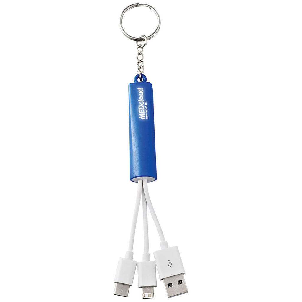 The three points that come out of the Bullet Royal Blue Route Light Up Logo 3-in-1 Cable help with charging up many items. Connect the unit to a USB port and then use one of the other plugs to charge up an Android or iOS device. The custom-branded design is useful for marketing purposes and can be a good item to give to customers.The minimum order for this product is 250 pieces.