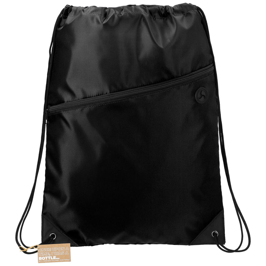 Your custom logo will be the star with the Bullet Black Robin RPET Drawstring Bag. The bag has a large main compartment with a sinching rope and a zippered front pocket with earbud port and reinforced corner tabs. Great for storing gym clothes on your way to and from your workout or for carrying a few items for a class, this bag is made from 100% recycled polyester. Add a company logo to use the drawstring closure bag as an incentive item at a recruiting event as potential employees or students can take away a bag and remember your name. Place your order today for this simple, lightweight way to show off your brand.The minimum order for this product is 150 pieces.