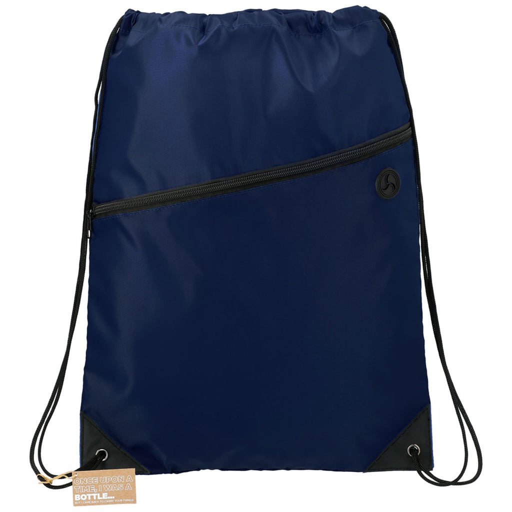 Your custom logo will be the star with the Bullet Navy Robin RPET Drawstring Bag. The bag has a large main compartment with a sinching rope and a zippered front pocket with earbud port and reinforced corner tabs. Great for storing gym clothes on your way to and from your workout or for carrying a few items for a class, this bag is made from 100% recycled polyester. Add a company logo to use the drawstring closure bag as an incentive item at a recruiting event as potential employees or students can take away a bag and remember your name. Place your order today for this simple, lightweight way to show off your brand.The minimum order for this product is 150 pieces.