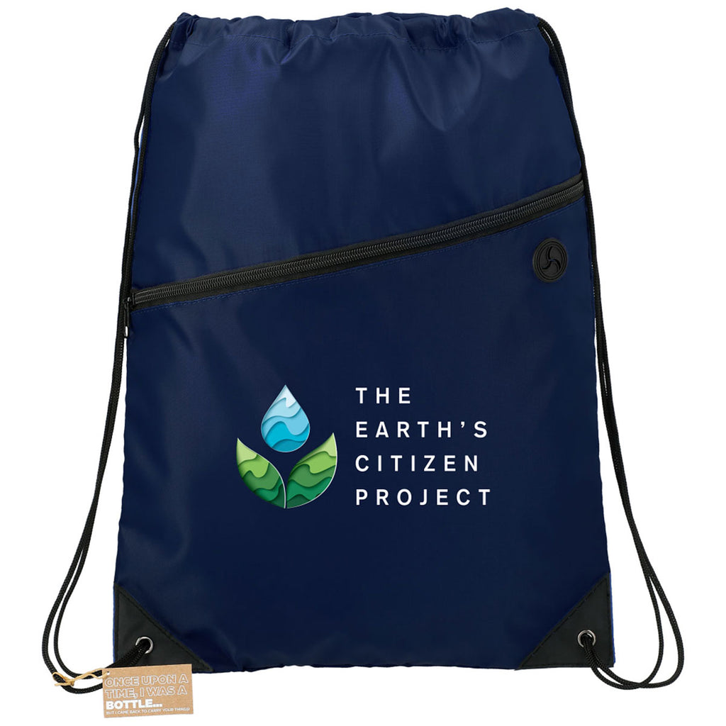 - The Robin RPET Drawstring Bag has a large main compartment with a cinching rope closure. The zippered front pocket also features an earbud port and reinforced corner tabs. This bag is manufactured from 100% recycled 210d polyester, made from water bottles. Through a partnership with 1% For The Planet one percent of sales of this and all EcoSmart products will be donated to nonprofits dedicated to protecting the planet.