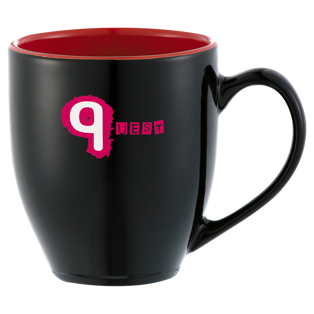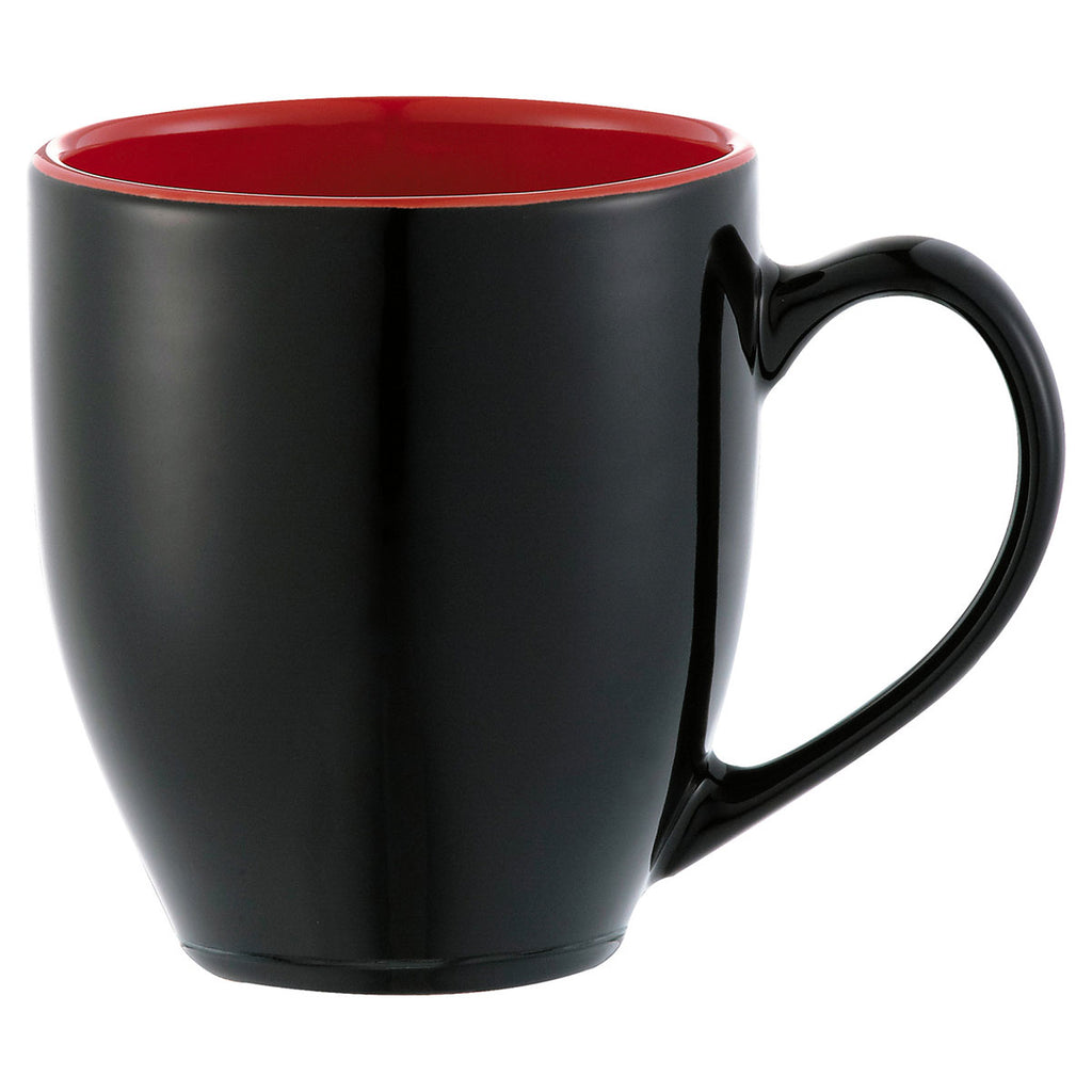 The dual-color layout of the Bullet Black With Red Lining Zapata 15oz Mug Electric makes it a crowd-pleaser. The outside features a ceramic body while the inside features a distinct color accent of your choosing. Add your company's logo to the outside to complete the look. The design is a great option for your employees who enjoy coffee or tea.