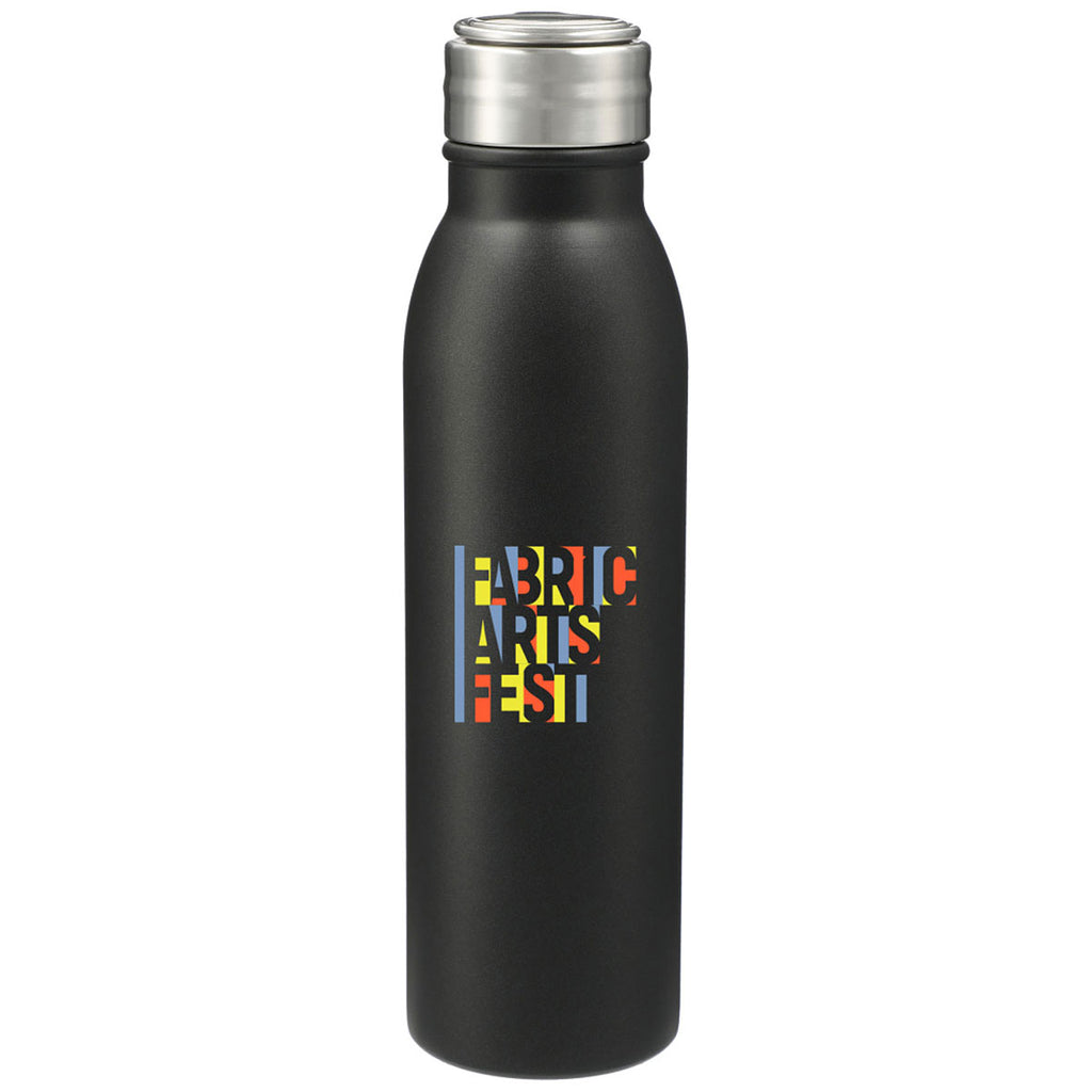 Enjoy your company logo on the Bullet Black Vida 24oz Stainless Steel Bottle that is made for fun, working out, and adventure. The stainless steel bottle has a screw on lid and stainless steel loop to attach to a backpack or belt loop as needed with a simple carabiner. A wonderful employee appreciation gift for any occasion or something to set out at trade shows to encourage an impulse buy. The large 24 oz bottle is perfect for work to keep drinks warm or cool as needed throughout the day so you can focus on other things. Place an order for several to always have this bottle on hand.