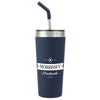 The Bullet Black Faye 20oz Vacuum Tumbler w/ SS Straw features double-wall stainless steel construction with vacuum insulation. Use it to keep your favorite beverages hot for five hours or cold for 15 hours. It has a food-grade stainless steel straw with a comfortable removable silicone tip for safe sipping. The spill-proof press-on lid, offers a slide closure. Reusable and dishwasher-safe, the included straw is an eco-friendly, environmentally responsible, and sustainable alternative to disposable plastic straws. Oder a sustainable and affordable drinkware option and add a custom-printed logo on the front.
