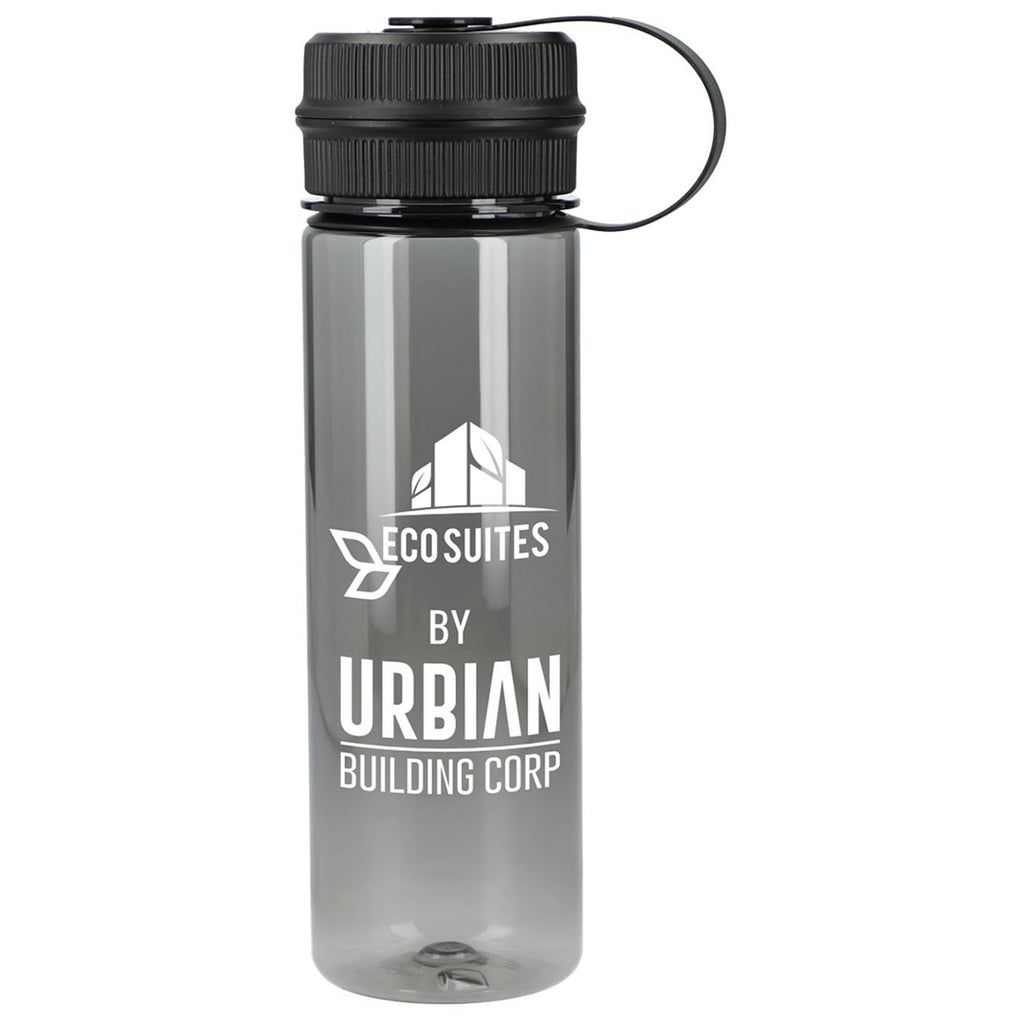 The Bullet Charcoal Venture Recycled R-PET Sports Bottle 21oz is versatile, on-trend, and built to last. The 100% leakproof lid is secured to the bottle with an easy-carry tether. The top of the easy-grip lid effortlessly twists apart for access to the chug spout and the lower part completely twists off to access the wide opening for easy cleaning and refilling. Great for lightweight hydration for long hiking or a quick workout. Available to be customized with a company logo.