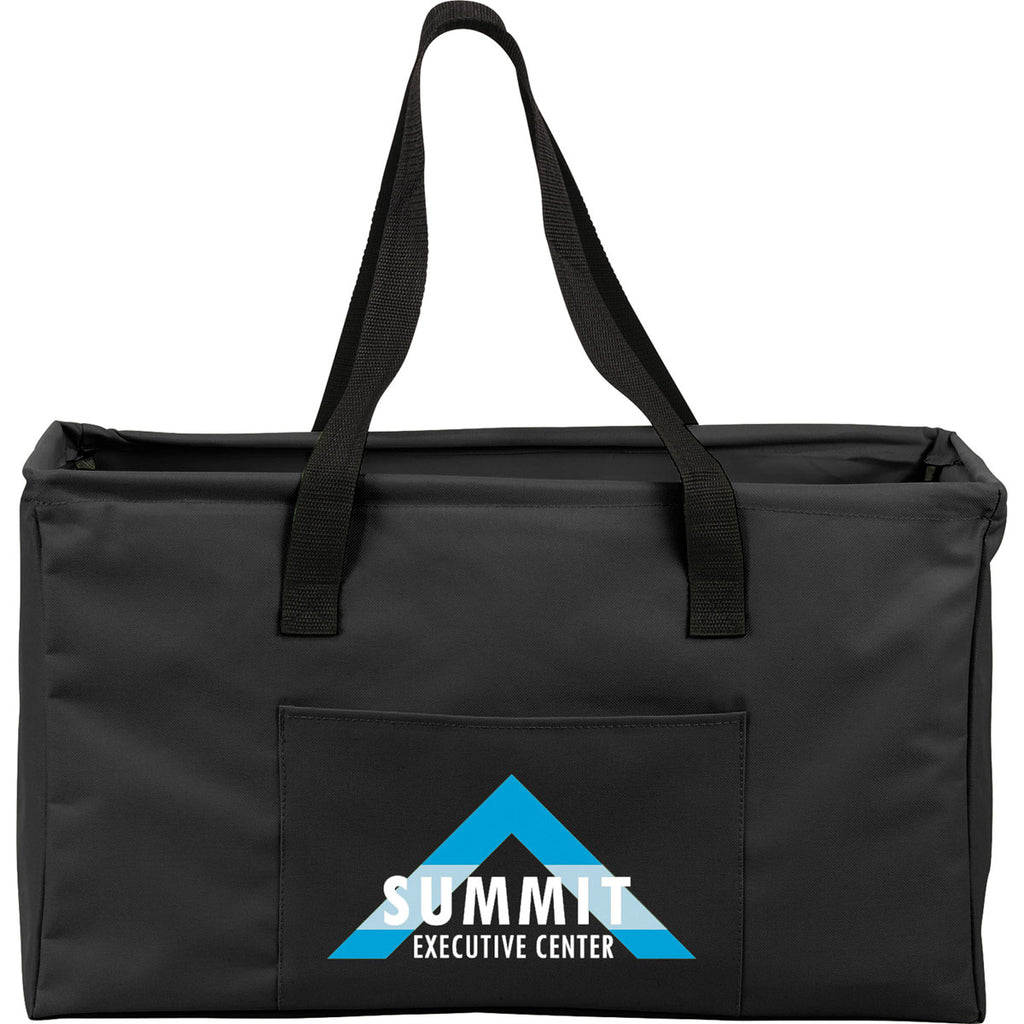 The Bullet Black Large Utility Tote is a unique item that you can order with your corporate logo to hand out at trade shows and recruiting events. The unusual box shape can make this a logoed conversation piece that helps keep your company name in people's minds, making this a handy promotional tool.