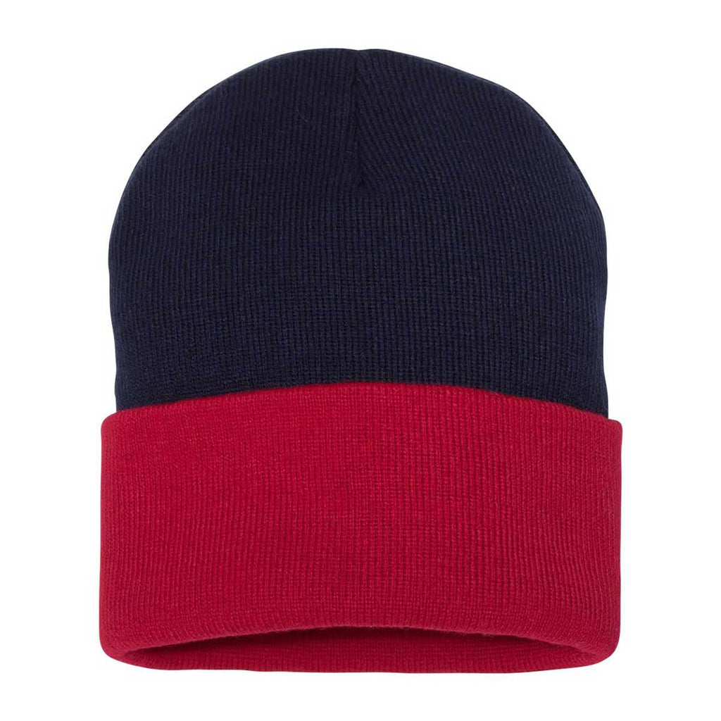 Create a custom look in multiple colors with the Sportsman Navy/Red 12" Knit Beanie. Made of 100% acrylic knit, this beanie has an adjustable cuff that can be worn as you prefer. Add a company logo to use these beanies as part of employee apparel for those who need to create a look that best represents your company. Add a corporate logo and choose a bright color for those who need headwear while working outdoors. These make an ideal gift for those in your company or for fans of sporting events that want to show local team spirit.Highlights