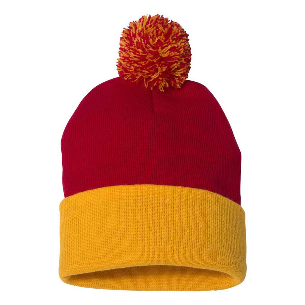Sportsman Red/Gold Pom-Pom 12" Knit Beanie