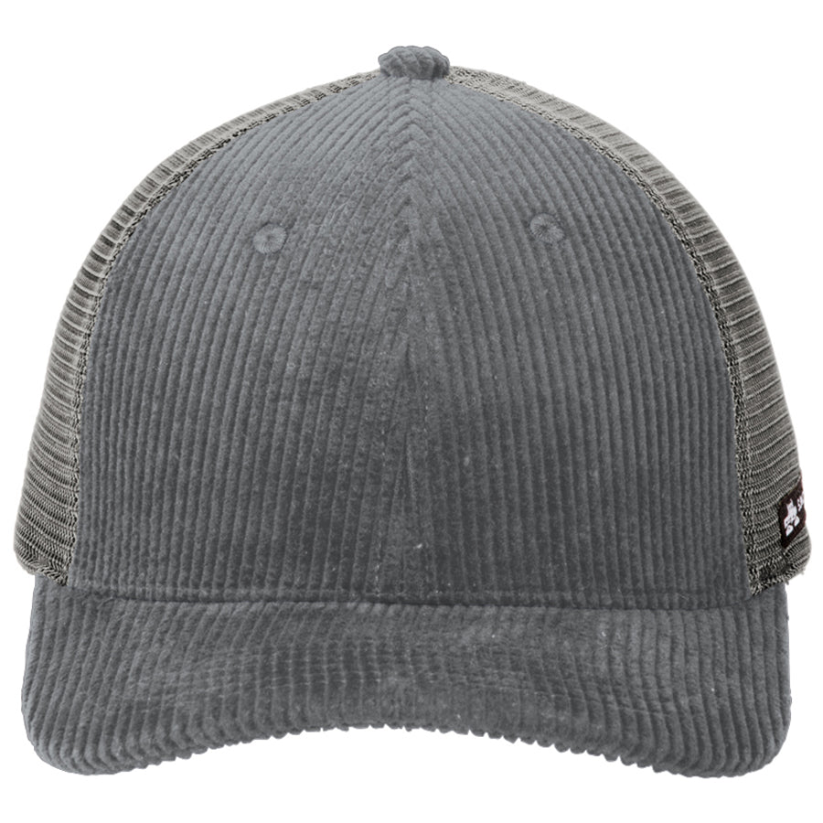 Made with a cool corduroy fabric, the Spacecraft Charcoal Gray/ Gray Conway Trucker Cap is a great way to make sure your company's custom logo gets the attention it deserves. Mesh back panels give your personalized trucker cap a vintage look that is currently trending, while adjustable snapback closure allows it to fit anyone on your team.