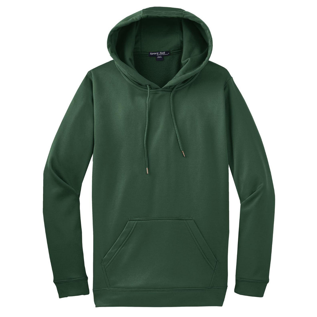 If you ask us, a hooded pullover is the quintessential athletic piece of outerwear. As such, it needs to accomplish many things. It should be durable usually, a 100% polyester fabric handles that job nicely. It should have a classic design with no frills dyed-to-match drawcords would help in that department. And it should fit snugly while giving you room to move self-fabric cuffs and hem can do a good job of that. By now you've guessed that the Sport-Tek Men's Forest Green Sport-Wick Fleece Hooded Pullover fulfills all of these criteria and more. What is it missing? Just your company's logo embroidered on the front.