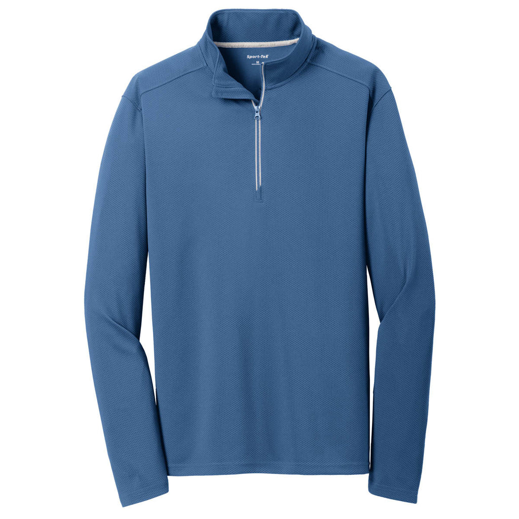 A good corporate quarter zip should be ready for anything. Armed with durable 100% polyester, the Sport-Tek Men's Dawn Blue Textured 1/4-Zip Pullover is ready for anything and a little bit more. Not only is it comfortable, with the aforementioned fabric and a tag-free label that the back of your neck will thank you for, but it offers a chin guard, set-in sleeves, open cuffs and hem, and a contrast zipper & cadet collar. Add your company's custom logo to the left chest and you'll be ready to display your corporate branding in just about any situation, looking clean, professional, and ready for anything.Highlights