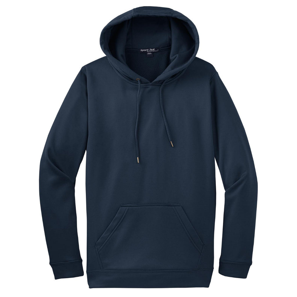 If you ask us, a hooded pullover is the quintessential athletic piece of outerwear. As such, it needs to accomplish many things. It should be durable usually, a 100% polyester fabric handles that job nicely. It should have a classic design with no frills dyed-to-match drawcords would help in that department. And it should fit snugly while giving you room to move self-fabric cuffs and hem can do a good job of that. By now you've guessed that the Sport-Tek Navy Sport-Wick Fleece Hooded Pullover fulfills all of these criteria and more. What is it missing? Just your company's logo embroidered on the front.