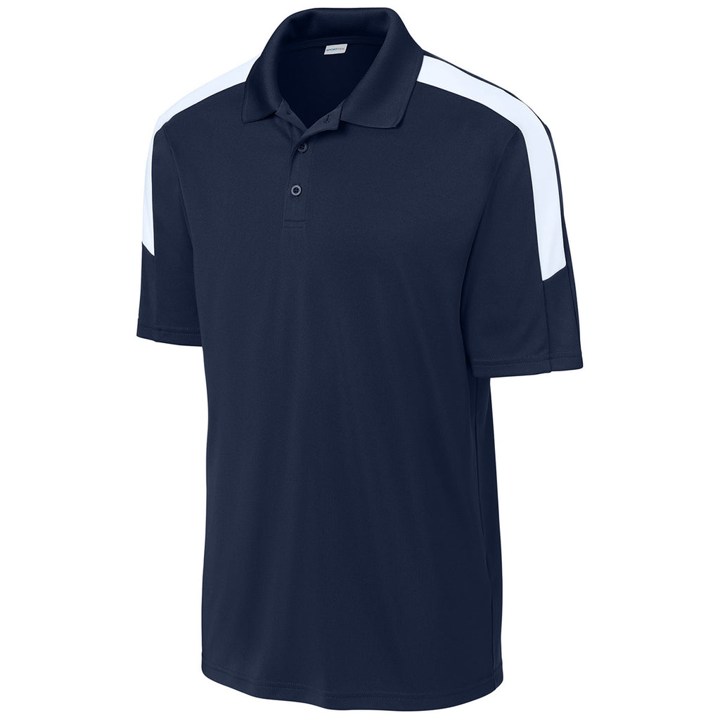 Sport-Tek Men's True Navy/ White Competitor United Polo with a custom logo is a great way to outfit or support your team. The lightweight polo with a complementary stripe on the shoulders and partial sleeve offers a UPF rating of 30+ and is moisture-wicking for all-around performance. Outfit your entire team on a budget.Corresponding Women's Style: Sport-Tek Women's True Navy/ White Competitor United Polo