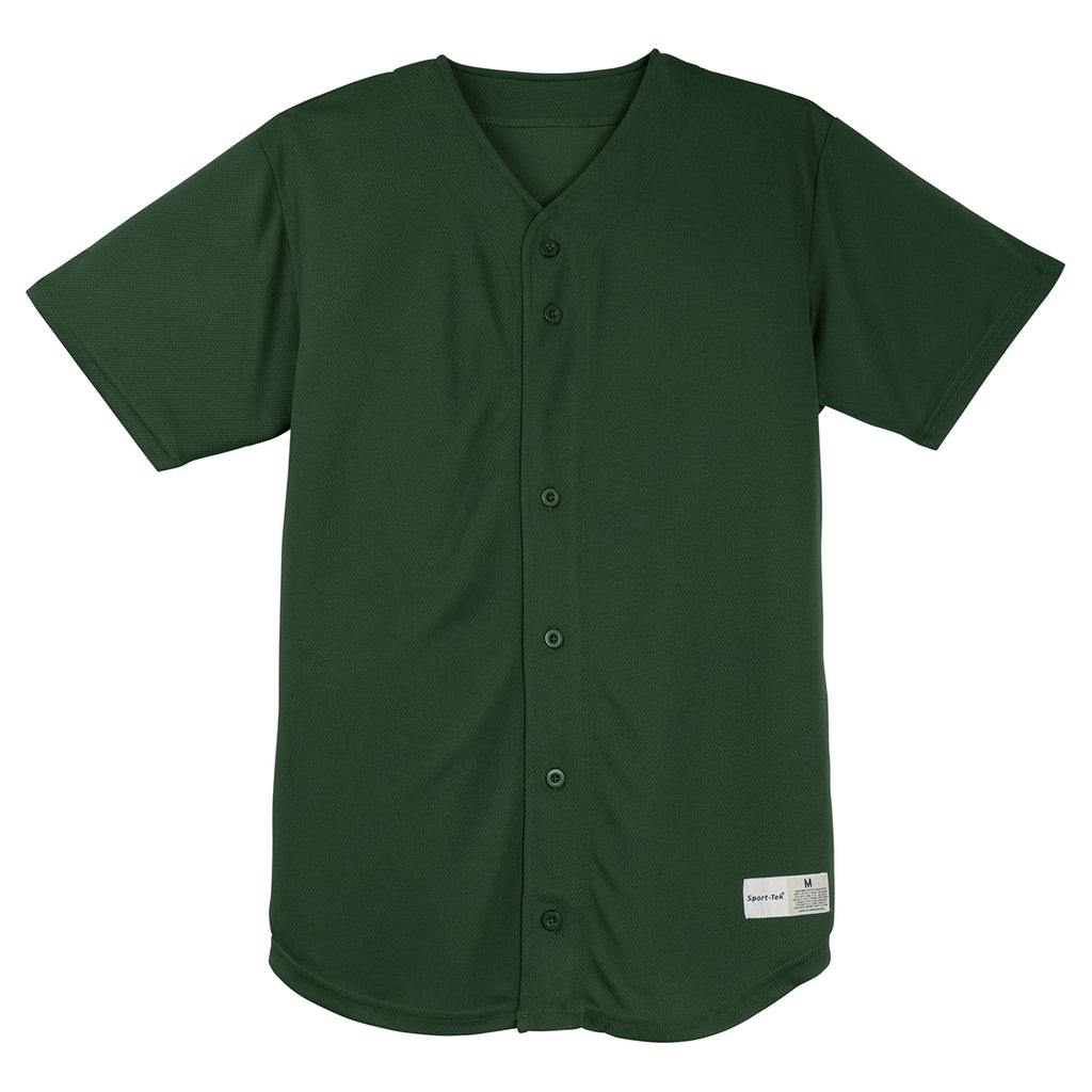 There is a 12 piece minimum on all orders for Sport-Tek t-shirts. This item will be imprinted, not embroidered.This Sport-Tek Men's Forest Green PosiCharge Tough Mesh Full-Button Jersey is an astute choice. But jerseys aren't all about the clothing on your backodd as it might sound to saybecause they can also help your company create some corporate apparel that people will love. And hey - they might even form a sports team!
