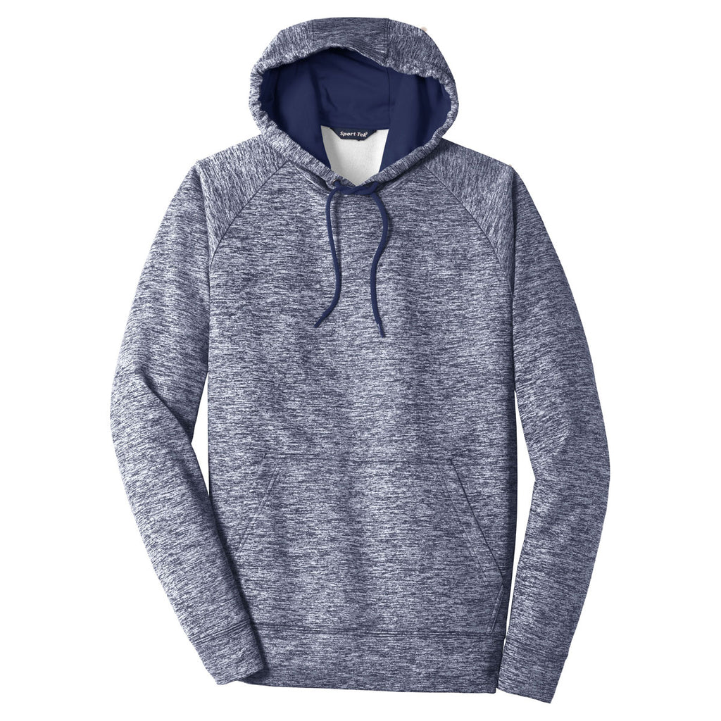 Designed to match most types of pants, the Sport-Tek Men's True Navy PosiCharge Electric Heather Fleece Hooded Pullover includes proprietary PosiCharge technology that keeps you warm. Instead of having to wear a bulky winter jacket, you can layer your outfit, with the hooded pullover working as the outer garment. Moisture wicking technology ensures you stay comfortable when active. Heathered yarn dye produces a sophisticated appearance that gets you noticed in large crowds. Take advantage of the stylish design by adding your company logo to the large imprint area.Corresponding Women's Style:Sport-Tek Women's True Navy PosiCharge Electric Heather Fleece Hooded Pullover