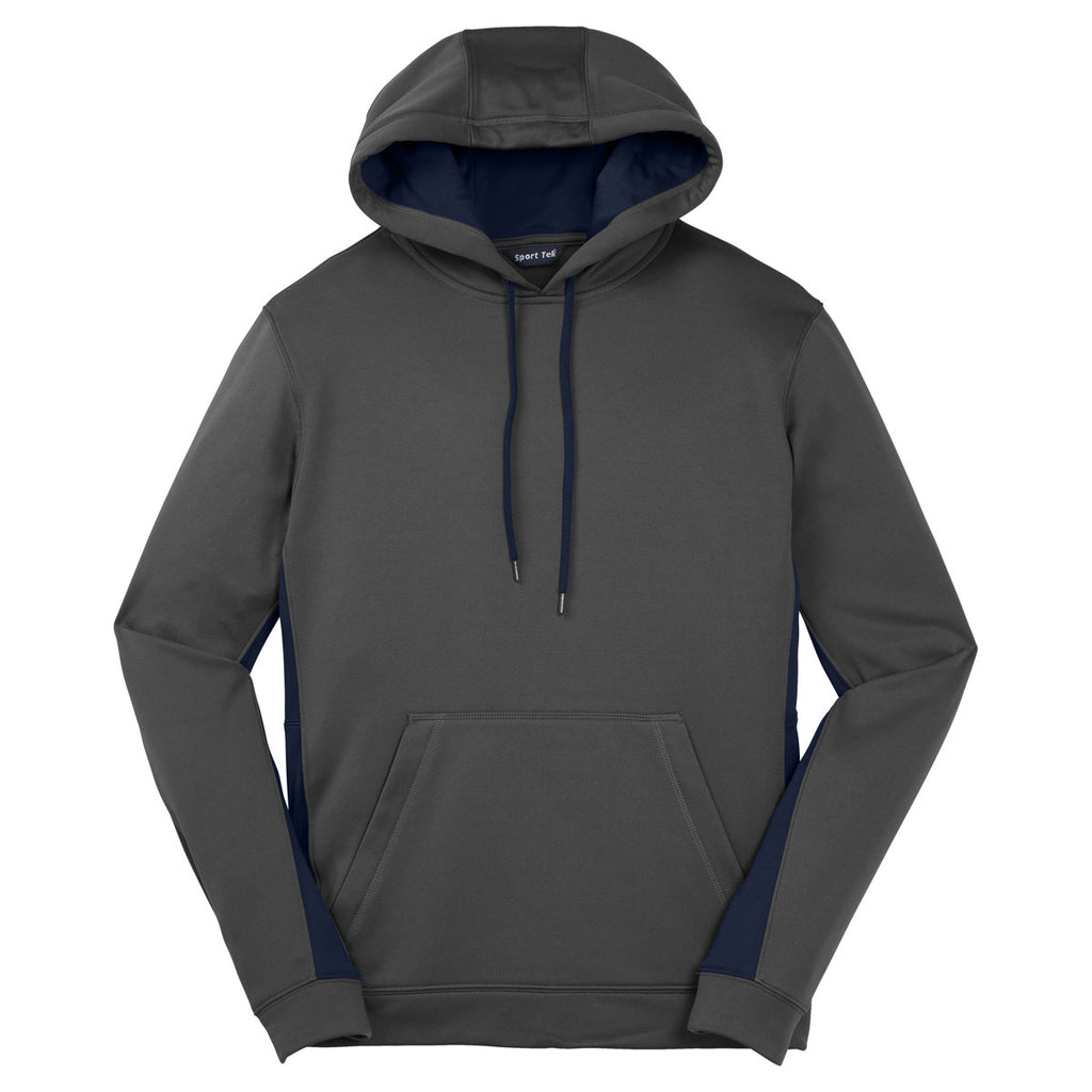 When the mercury goes down, your layering needs to go up. You know what we mean by layering, right? Take the Sport-Tek Men's Dark Smoke Grey/ Navy Sport-Wick Fleece Colorblock Hooded Pullover. This is a comfortable and durable layering item that you can use to gift your employees with warm and fashionable clothes to wear around the workplace. Just add your custom logo to the front and you've created something branded specifically to your company.Highlights