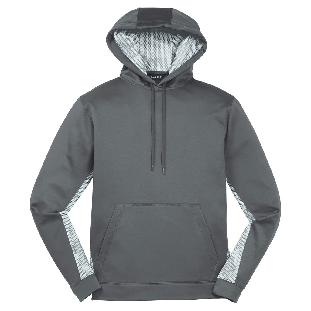 When the weather gets tough, so must you. That's the idea behind this Sport-Tek Men's Dark Smoke Grey/ White Sport-Wick CamoHex Fleece Colorblock Hooded Pullover. Add your own custom embroidery to make this a piece of corporate apparel that anyone can enjoy. Layering is ideally suited to serve as your canvas, and this is an item that will work for you in the elements, not against.Highlights