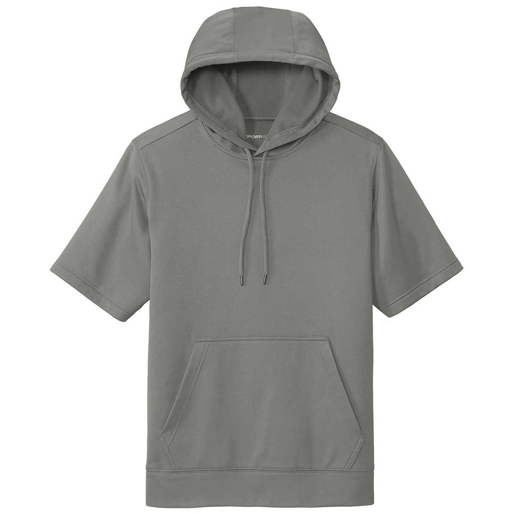 Hoodies are highly versatile and the custom Sport-Tek Men's Dark Smoke Grey Sport-Wick Fleece Short Sleeve Pullover Hoodie is no exception. Made of 100% polyester, this anti-static hoodie is made for layering whether you are playing a quick game of hoops or headed to the gym for hours of exercise. Add a custom heat transfer logo of your choosing to create a unique look. Perfect as a company uniform for those who work in the health and wellness arenas, this hoodie can carry a company logo with pride. The three panel hood has drawstrings for comfort and a front pouch to keep items safe.Highlights
