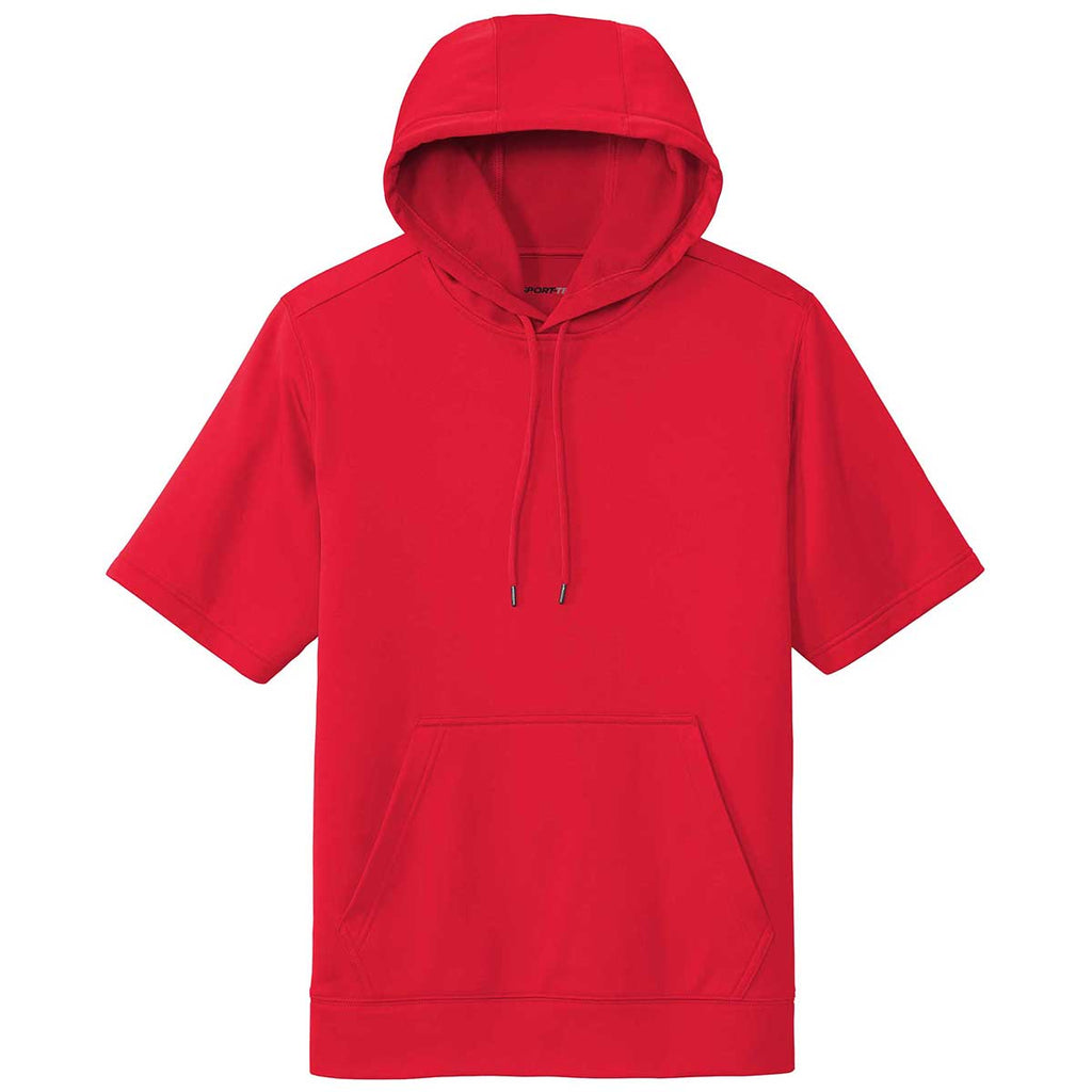 Sport-Tek Men's Deep Red Sport-Wick Fleece Short Sleeve Pullover Hoodie