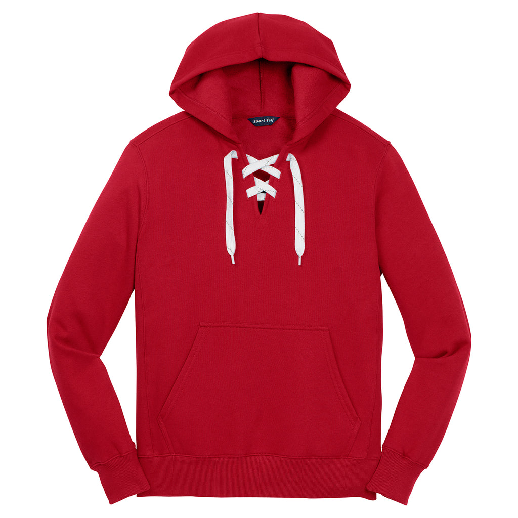 When the mercury goes down, your layering needs to go up. You know what we mean by layering, right? Take the Sport-Tek Men's Deep Red Lace Up Pullover Hooded Sweatshirt. This is a comfortable and durable layering item that you can use to gift your employees with warm and fashionable clothes to wear around the workplace. Just add your custom logo to the front and you've created something branded specifically to your company.Highlights