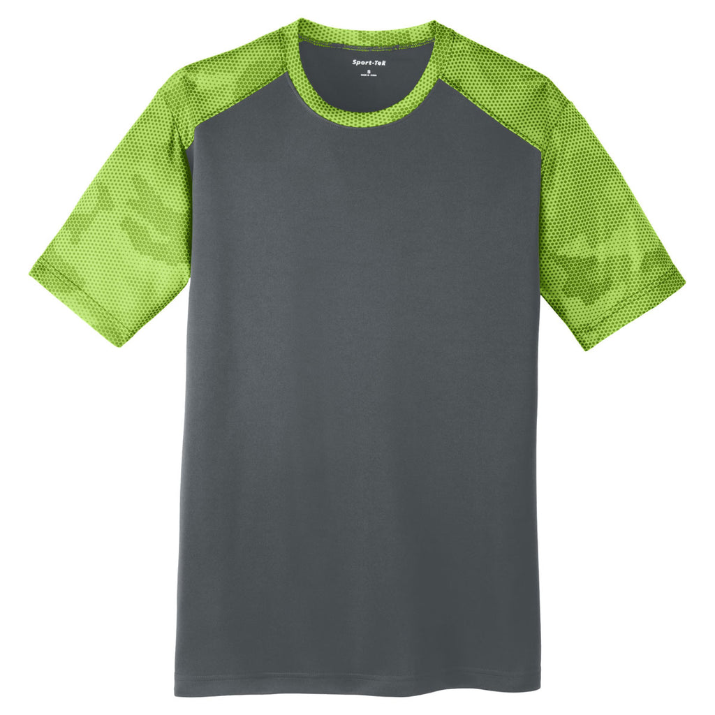 Sport-Tek Men's Iron Grey/Lime Shock CamoHex Colorblock Tee